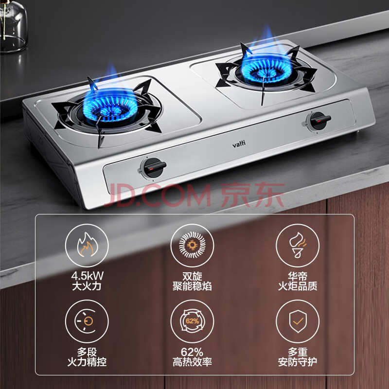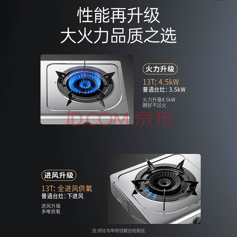 商品相册:华帝官方不锈钢台式燃气灶4.5kW猛火熄火保护煤气灶双灶台灶具i10013T【天然气产品】第