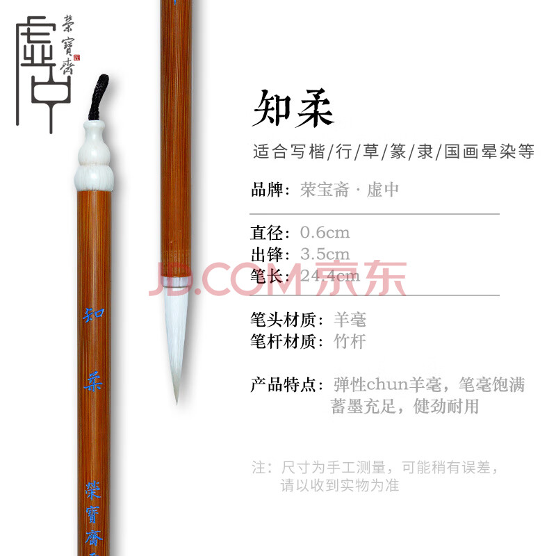 商品相册:【全网低价】荣宝斋 毛笔羊毫 善琏湖笔 文房四宝初学者成人学生篆隶行楷书法字帖碑帖练习笔 知柔-单支第