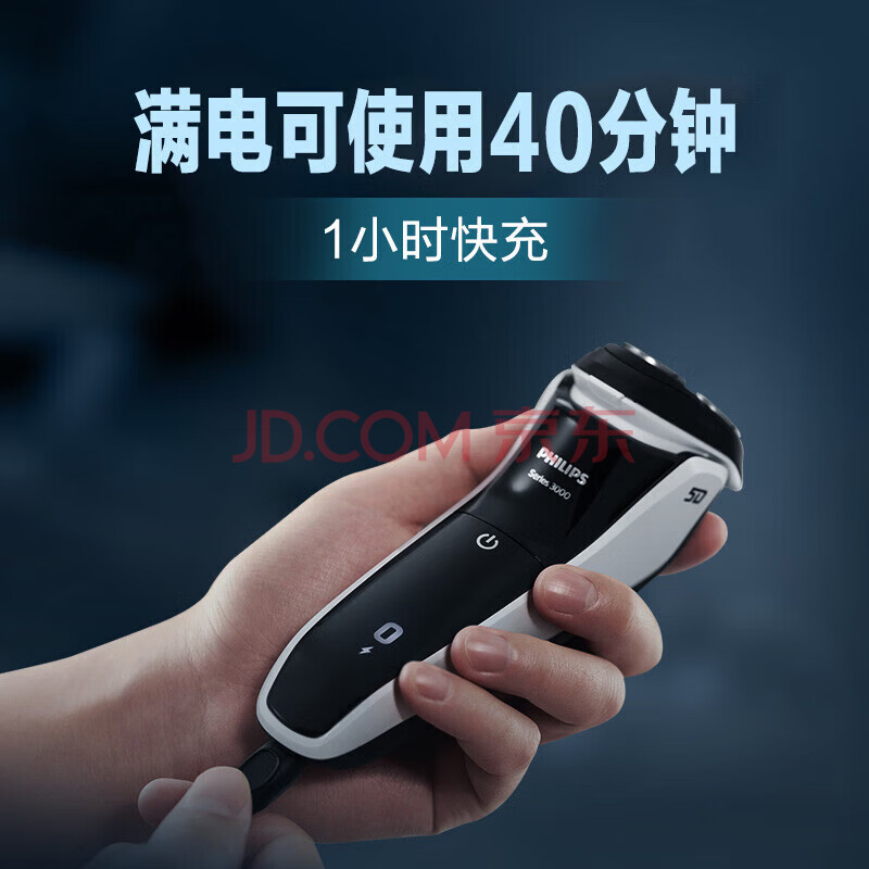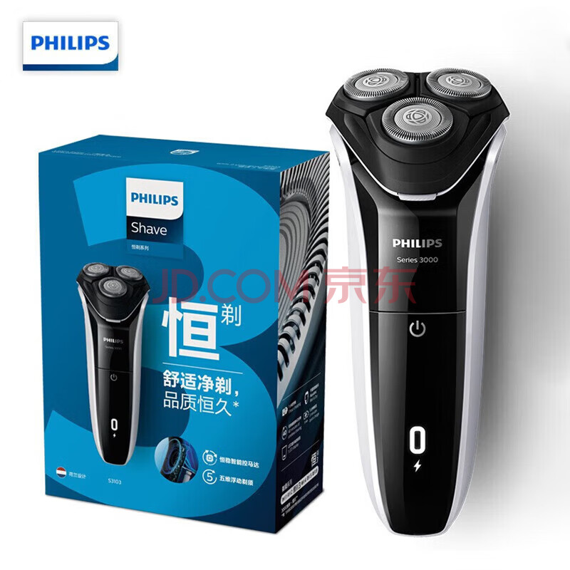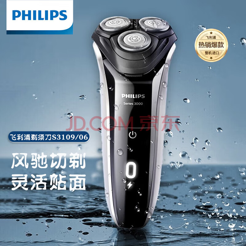 商品相册:飞利浦(PHILIPS)电动剃须刀 全身水洗 干湿双剃 旋转研磨三刀头 全新三系刮胡刀 S3109/06【升级USB快充】第