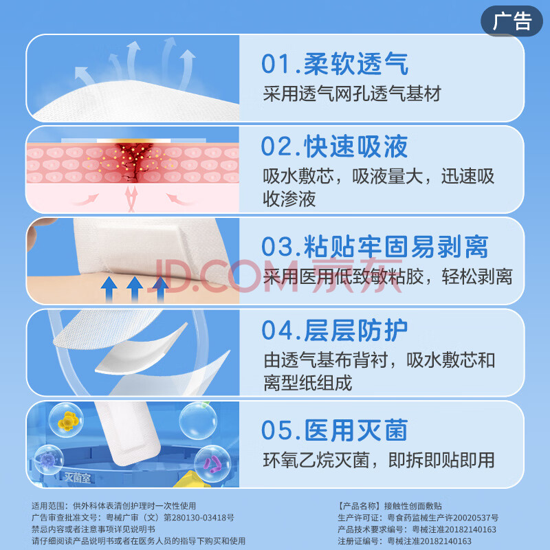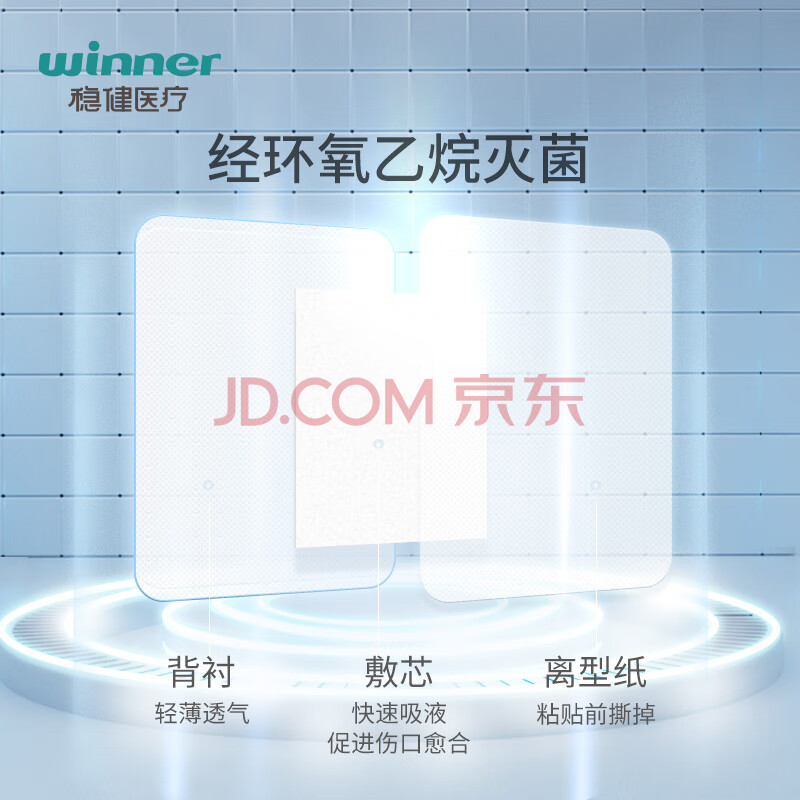 商品相册:稳健医用无菌敷料透气低敏伤口敷贴创口贴烫伤术后创面敷贴9*10cm10片第