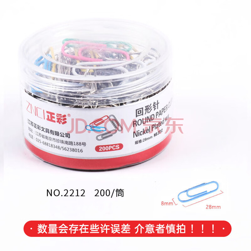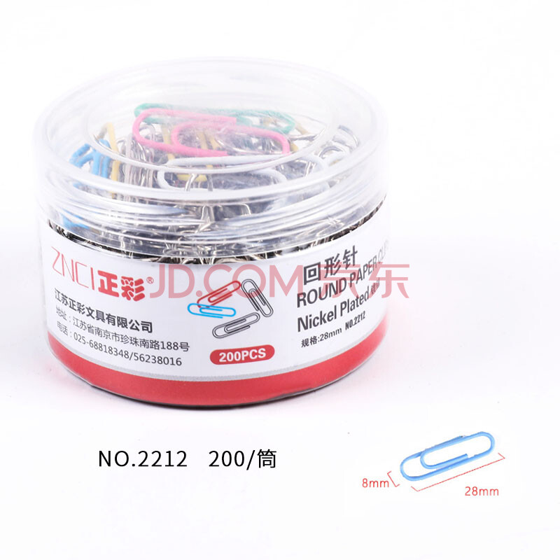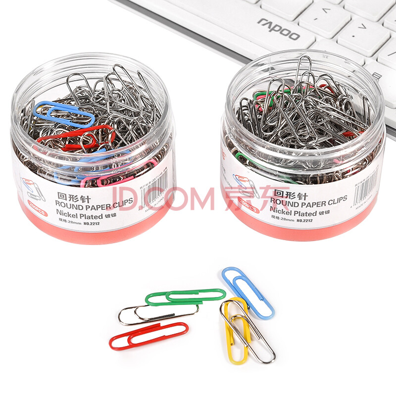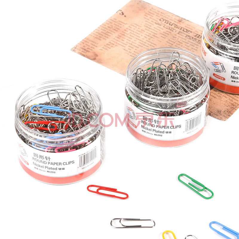商品相册:递乐 28mm镀镍防锈回形针 金属曲别针 装订工具财务文件收纳 200枚 /筒2212第