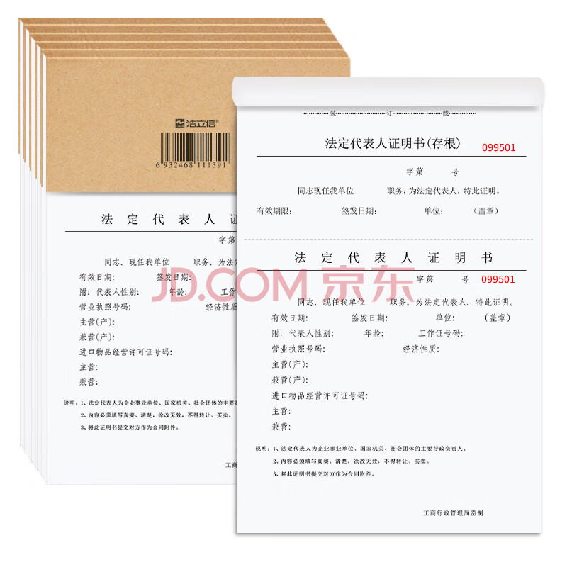 商品相册:浩立信 法定代表人证明书 带编号存根法人代表证明书代办事书委托书5本装第