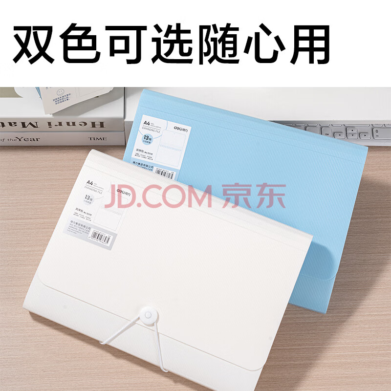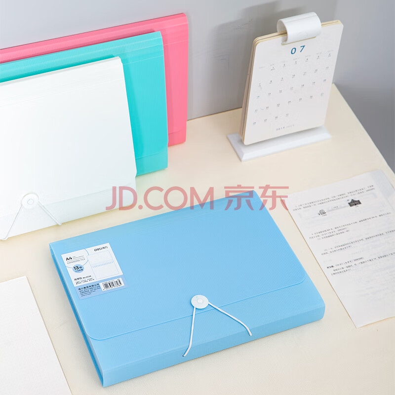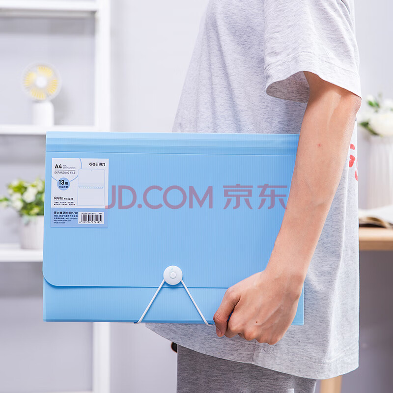 商品相册:得力(deli)a4/13格扣绳设计炫彩手提文件包/风琴包收纳袋 分科目保护会议学生试卷收纳包 小学初高中蓝5238第