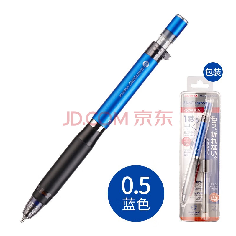 商品相册:斑马牌(ZEBRA)0.5mm不易断芯自动铅笔 学生绘图书写活动铅笔 笔身含橡皮檫 MA88 蓝色杆第