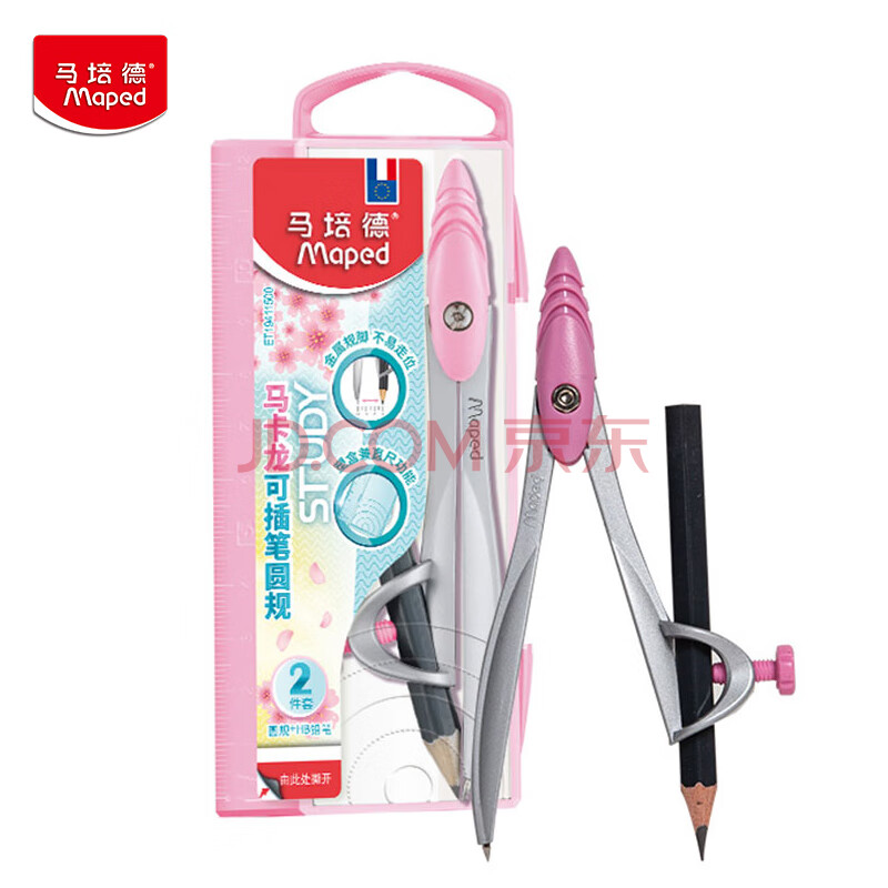 商品相册:马培德(Maped)马卡龙经典绘图圆规 初高中考试圆规 学生制图绘图学习工具 199191CH 粉色【铅笔款/2件套】第