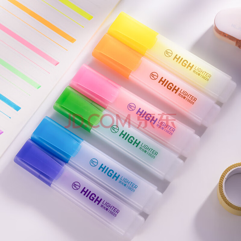 商品相册:得力(deli)大容量手6色荧光笔 学生考试重点醒目标记笔 办公记号笔帐可用 S628第