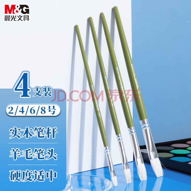 商品相册:晨光(M&G)文具学生水粉画笔 美术入门级小毛笔 4支装儿童画画 开学礼物女孩开学礼物 ABH97804第