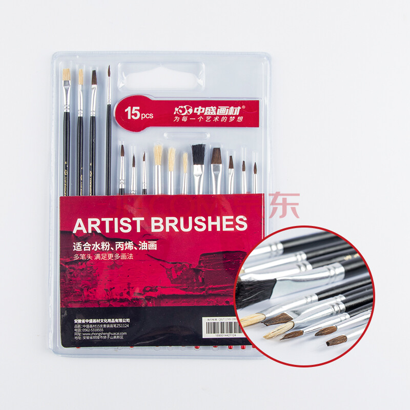 商品相册:中盛画材水粉画笔套装丙烯油画水彩颜料画笔排笔色彩笔勾线笔15支套装速写马克笔绘画第