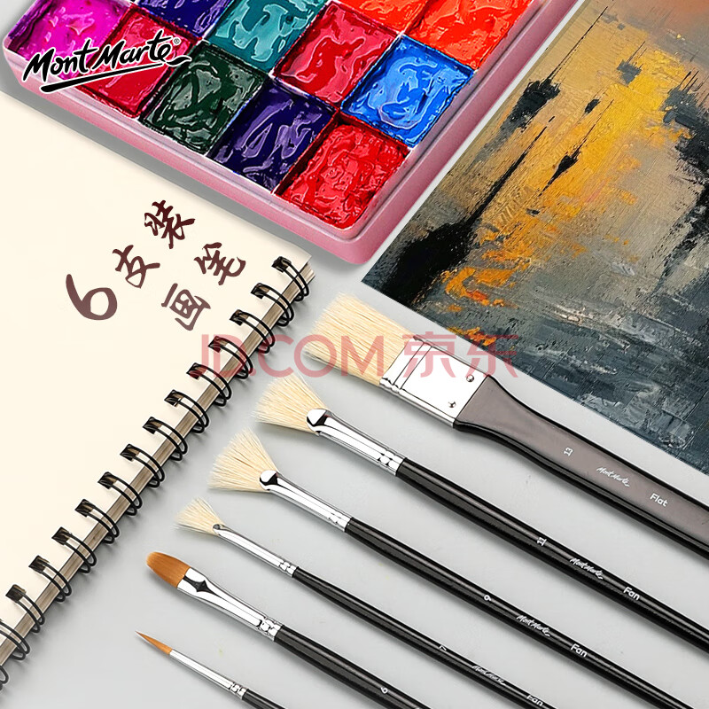 商品相册:蒙玛特(MontMarte)6支装水粉笔水彩画笔丙烯颜料画画笔美术马毛绘画笔儿童油画笔排笔笔刷套装BMHS1001第