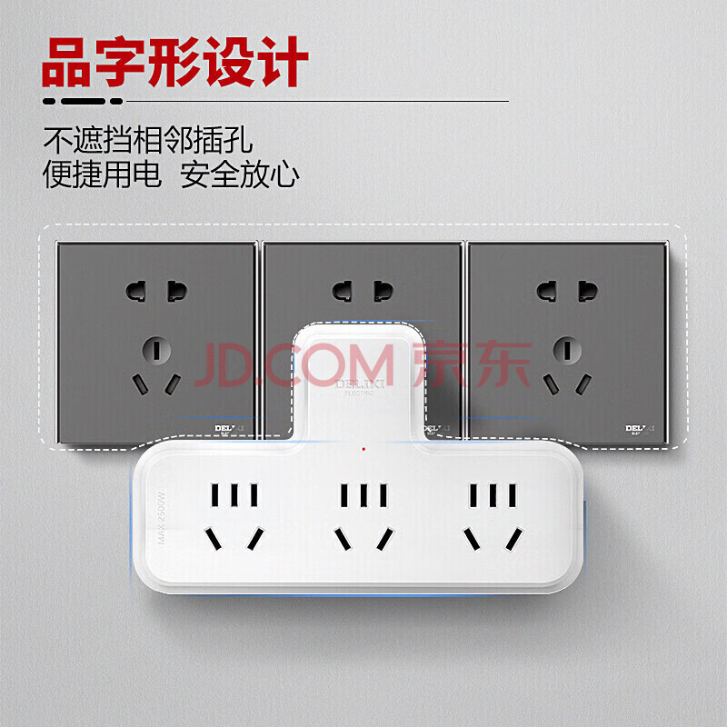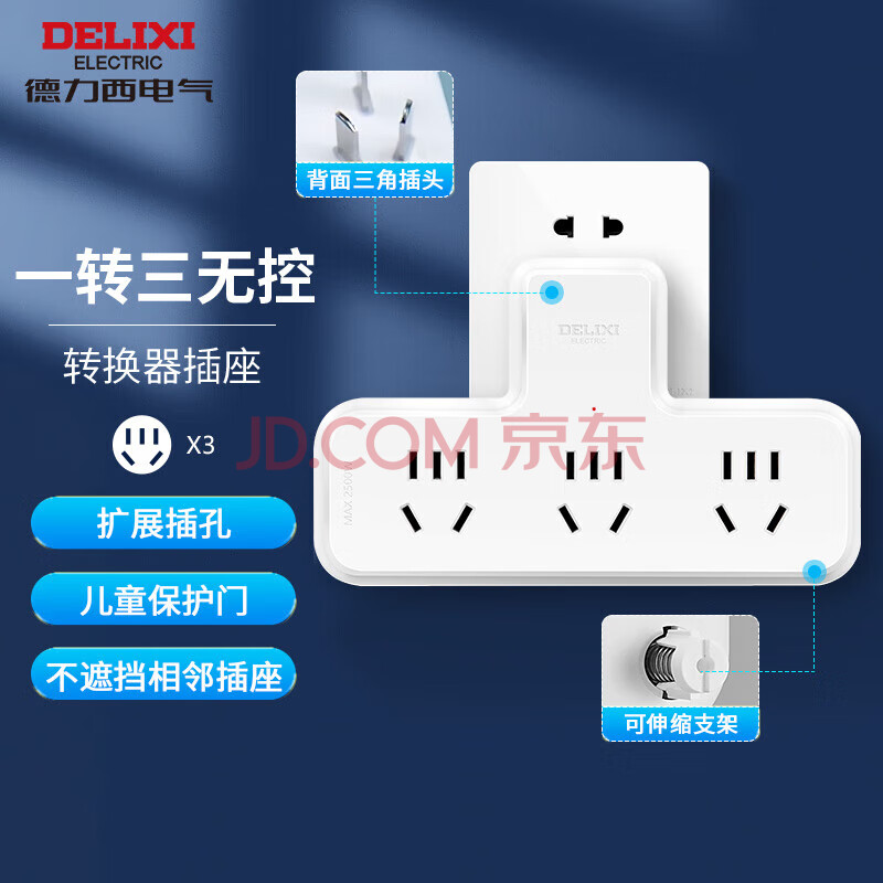 商品相册:德力西(DELIXI)转换插头/品字形一转三插座/无线转换插座/电源转换器/插排/排插 无控开关第