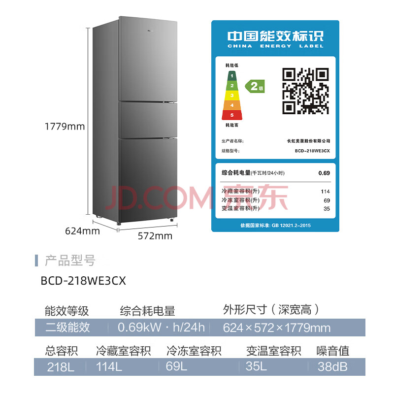 商品相册:美菱(MELING)【鲜食尚系列】218升三门小型电冰箱无霜租房宿舍净味节能轻音BCD-218WE3CX中门软冷冻第