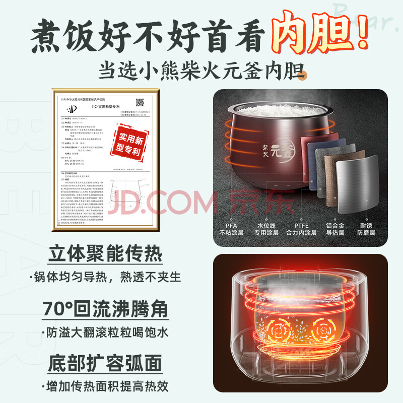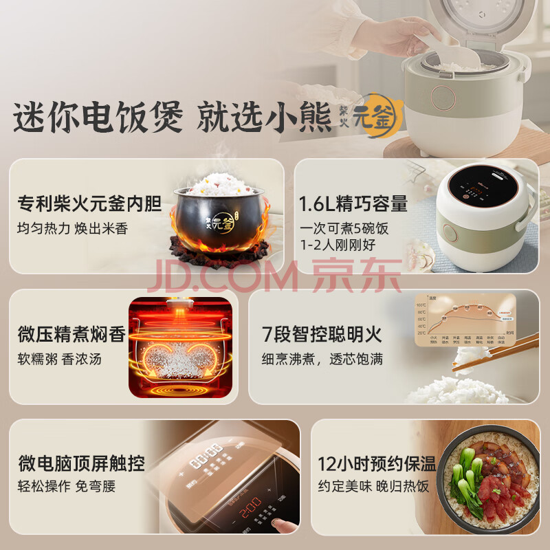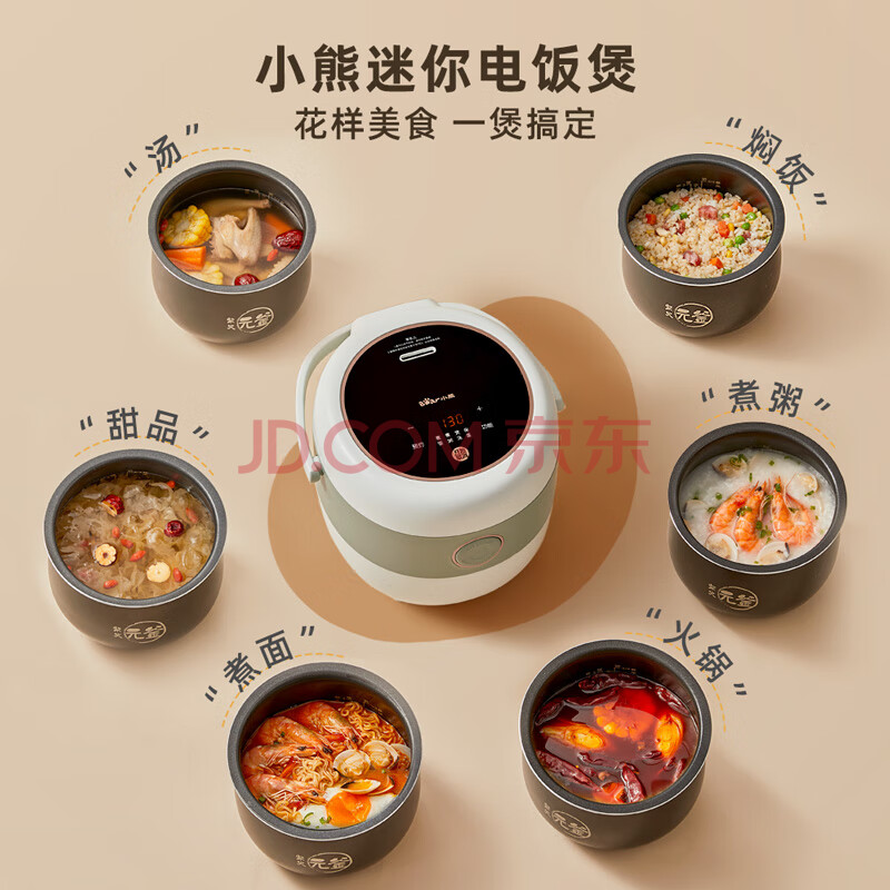 商品相册:小熊(Bear)电饭煲 电饭锅家用1-2人 智能预约多功能 一人小型迷你电饭煲米饭锅微压1.6升 DFB-B16C1第