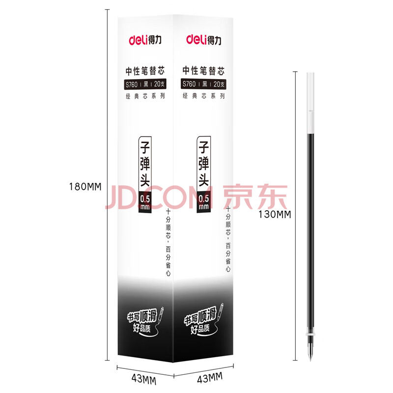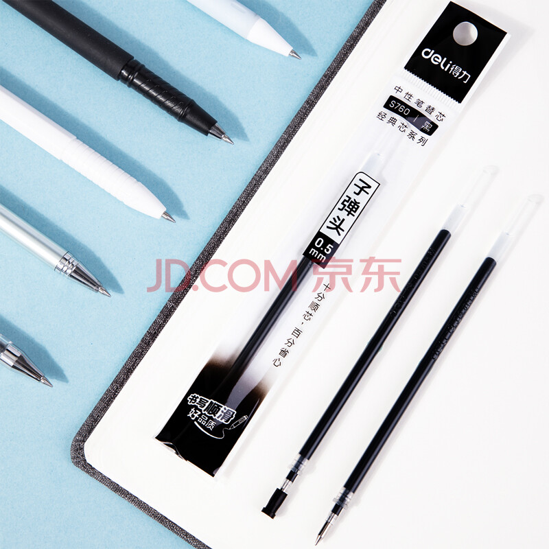 商品相册:得力(deli)0.5mm拔帽中性笔笔芯 子弹头签字笔水笔替芯 黑色20支/盒 S760第