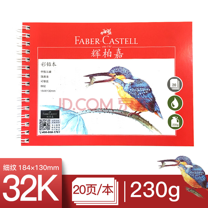 商品相册:辉柏嘉(Faber-castell)彩铅纸油性彩铅绘画本水溶性彩铅本32K细纹230g20页初学者随身写生手绘508052速写马克笔绘画第