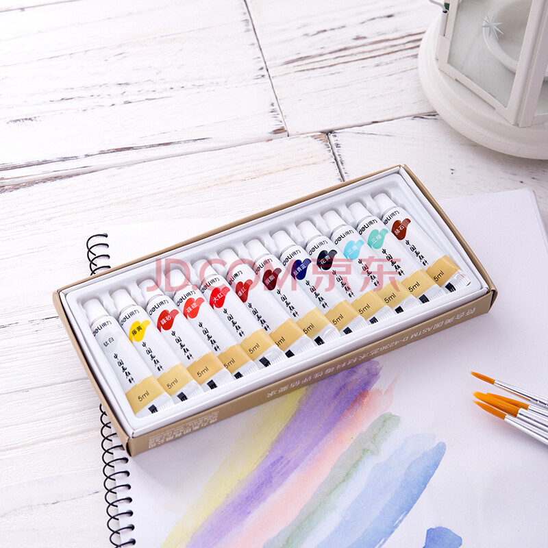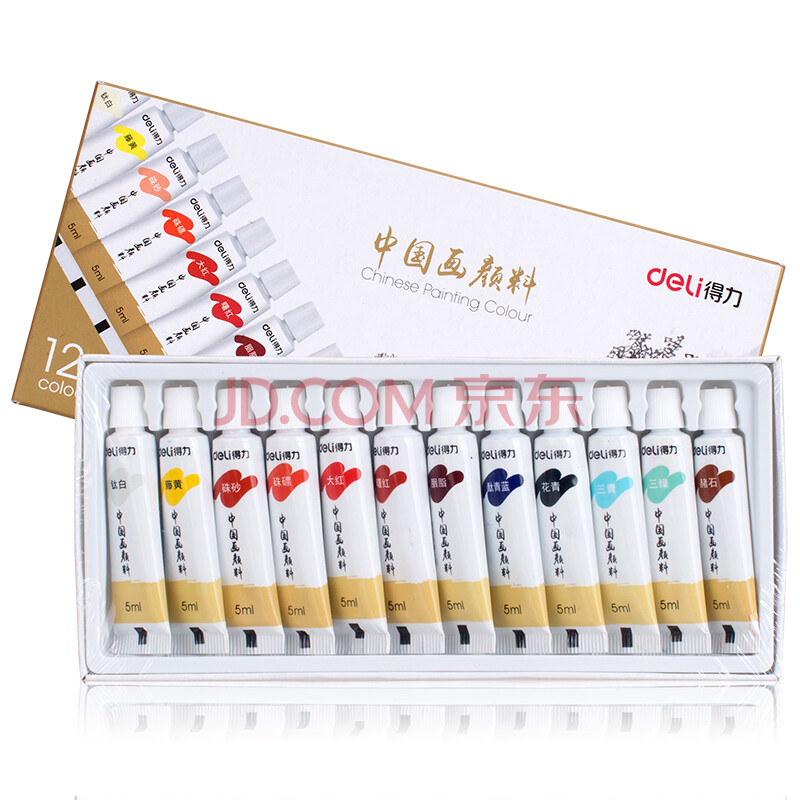 商品相册:得力(deli)12色5ml中国画颜料水墨山水画画画文房四宝绘画彩绘色彩入门套装考试第