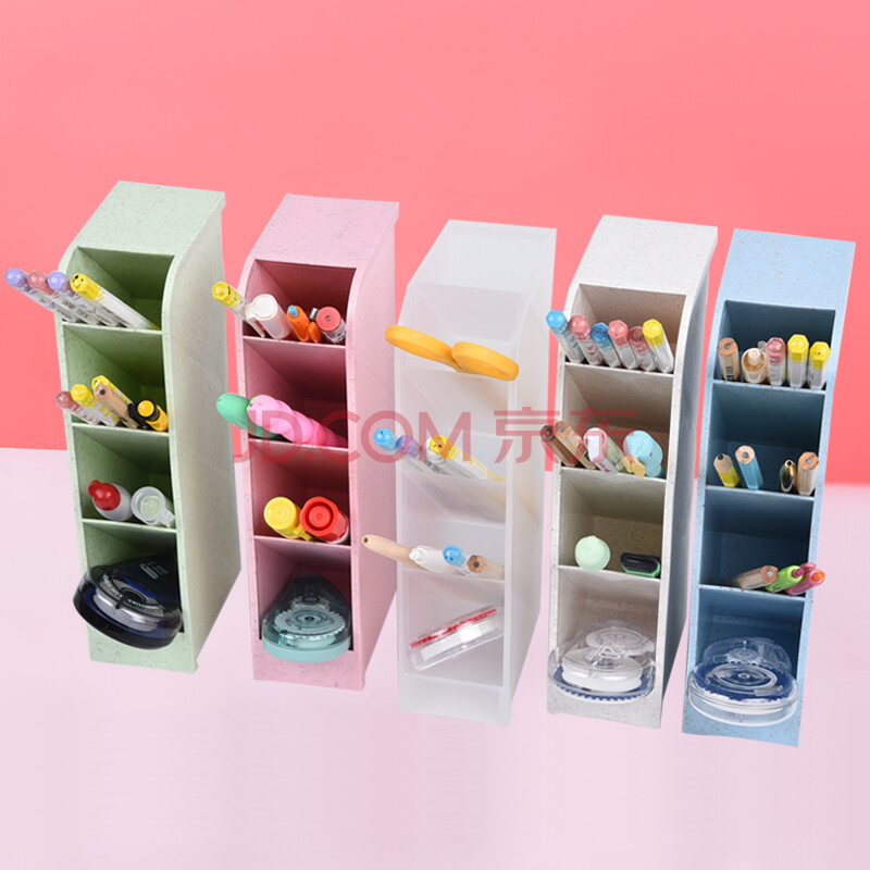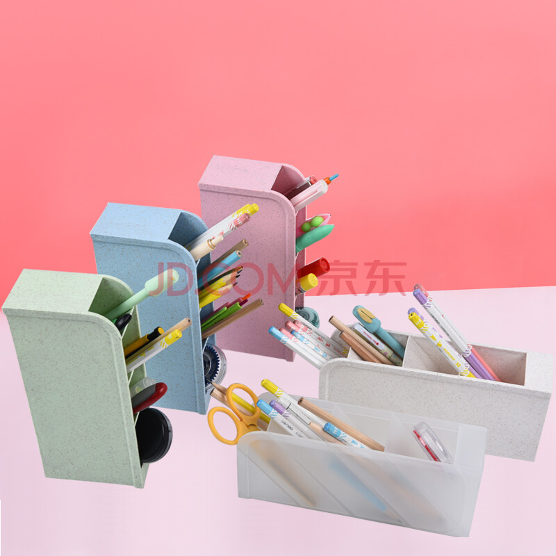 商品相册:递乐多功能笔筒创意时尚斜插式4格笔筒大容量整理盒男办公室小清新可爱桌面摆件2474透明白(3个装)第