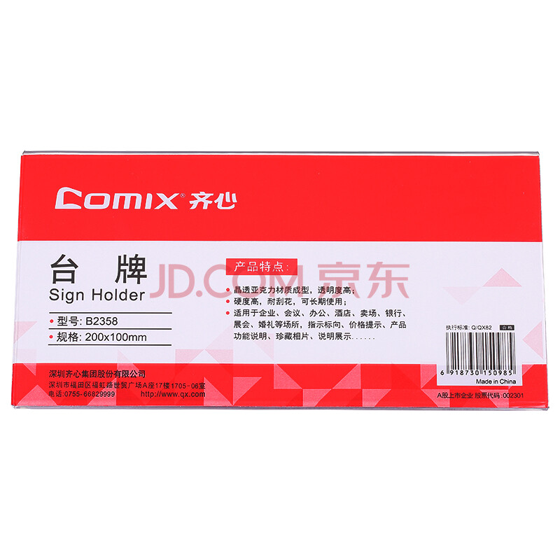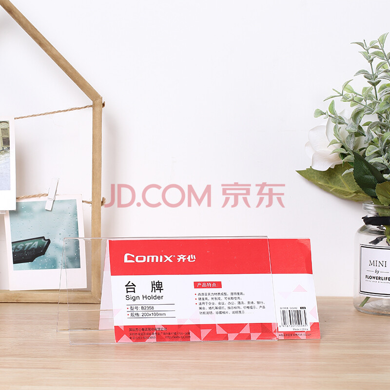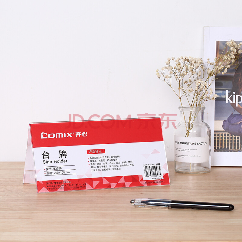 商品相册:齐心(COMIX)200*100mm 高透明亚克力V型亚克力双面台牌/桌牌架/台卡/展示牌 10个装 B2358第