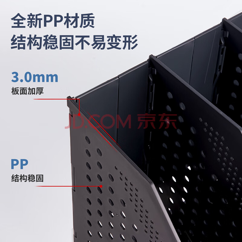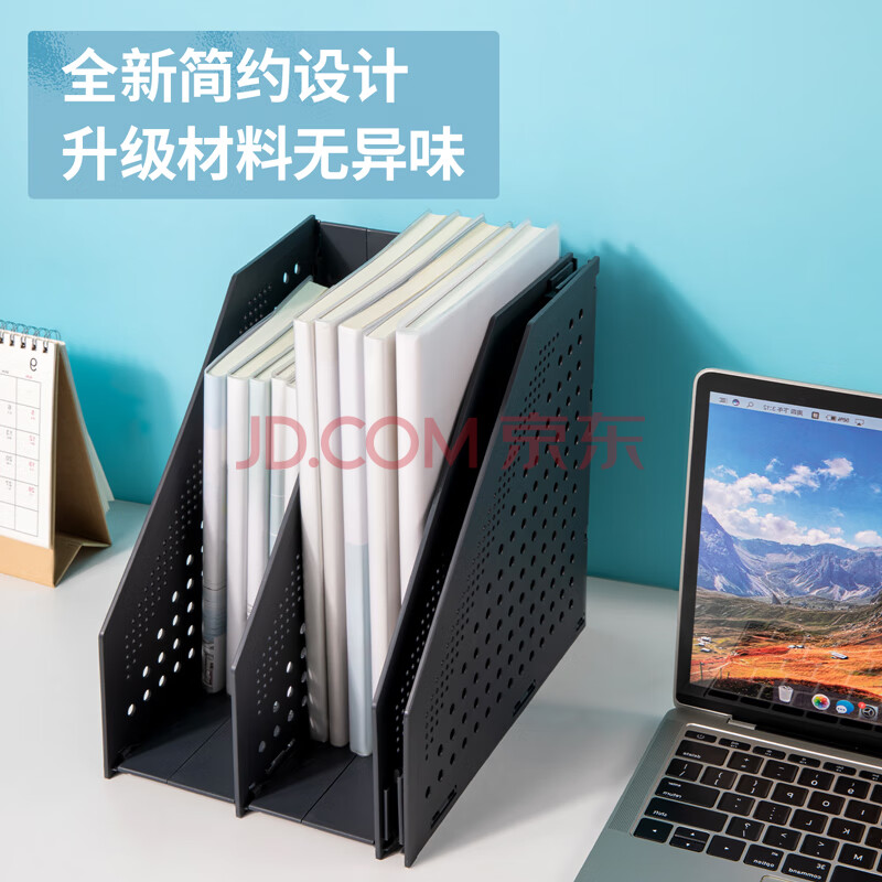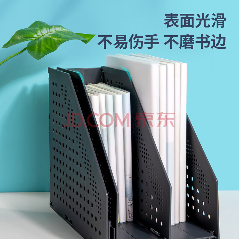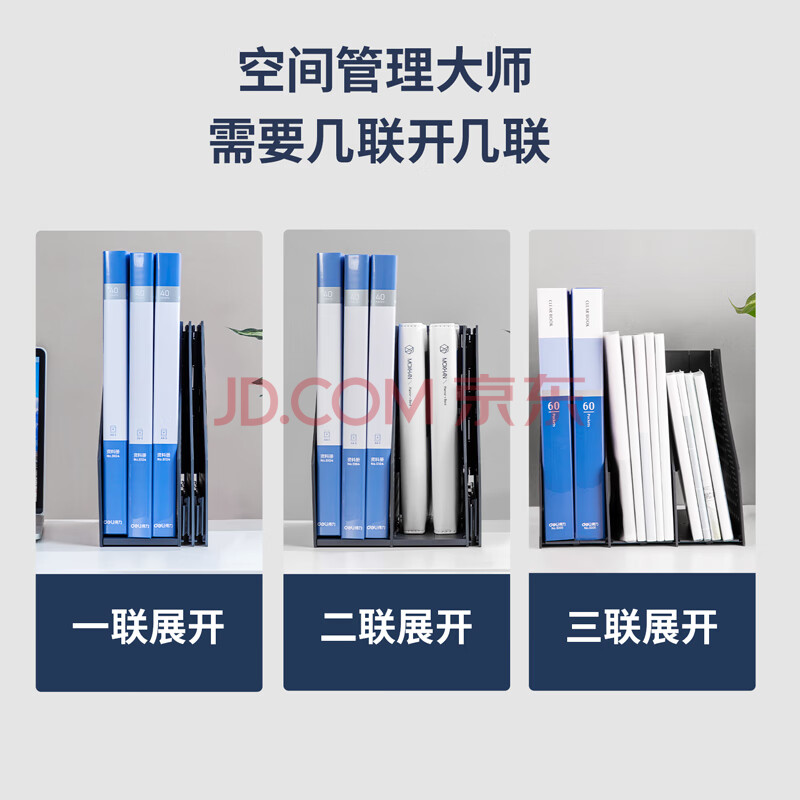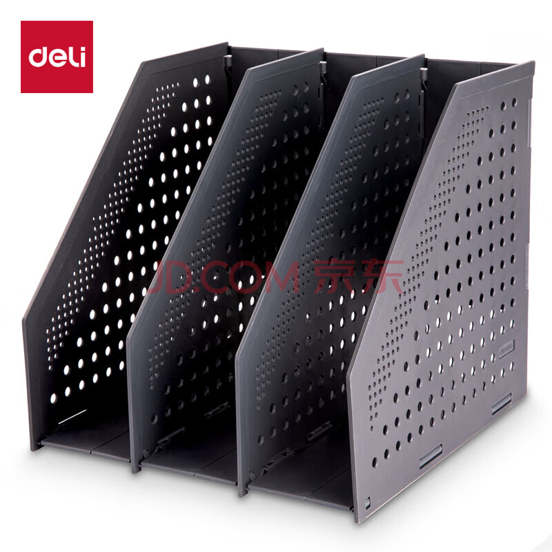 商品相册:得力(deli)可折叠3联镂空桌面文件框栏书立架档案收纳盒 办公室带标签资料文件置物架书本资料收纳神器 深灰第