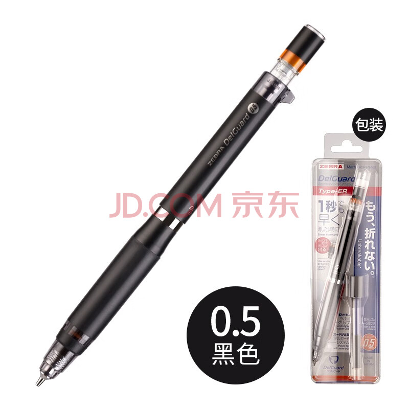 商品相册:斑马牌(ZEBRA)0.5mm不易断芯自动铅笔 学生绘图书写活动铅笔 笔身含橡皮檫 MA88 黑色杆第