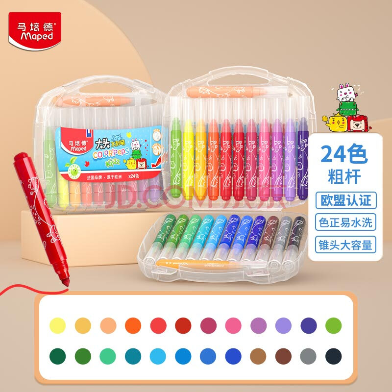 商品相册:马培德(Maped)儿童大头水彩笔 幼儿学生可水洗绘画水彩笔 初学美术彩绘涂鸦画笔 846322CH加粗款【24色/盒】第