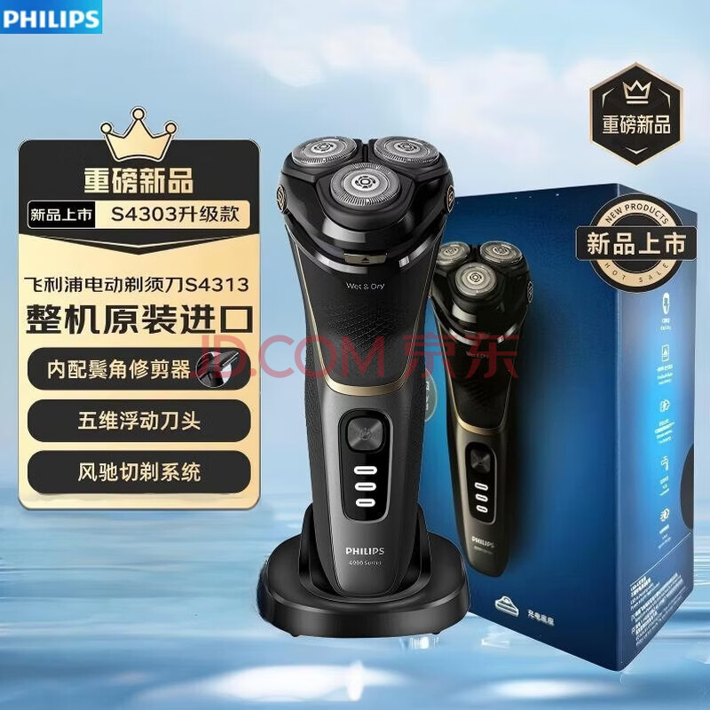 商品相册:PHILIPS飞利浦 男士电动剃须刀【高端整机原装进口】内置鬓角器刮胡刀胡须刀S4303升级款 S4313/13第