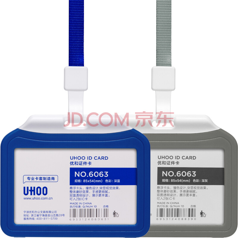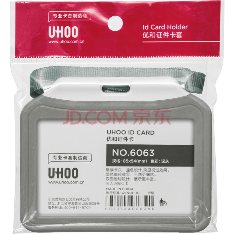 商品相册:优和(UHOO)双面透明证件卡套 灰色 横式 1个卡套+1根挂绳 公交卡套工作牌胸牌员工证件套 6113第