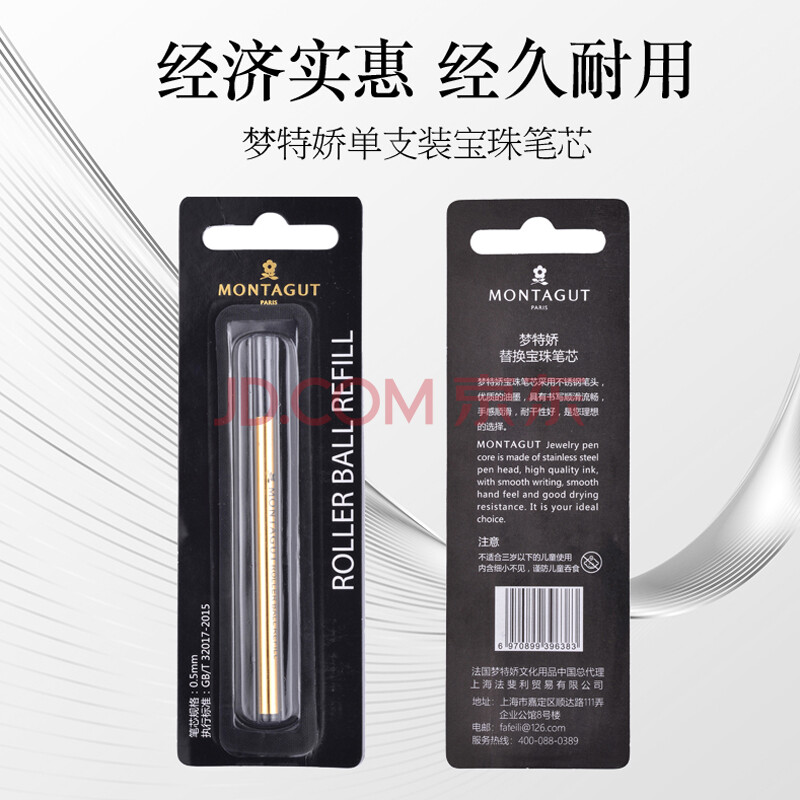 商品相册:梦特娇(MONTAGUT)签字宝珠笔金属螺旋纹旋转式笔芯替芯纸盒装1只装黑色0.7mm第