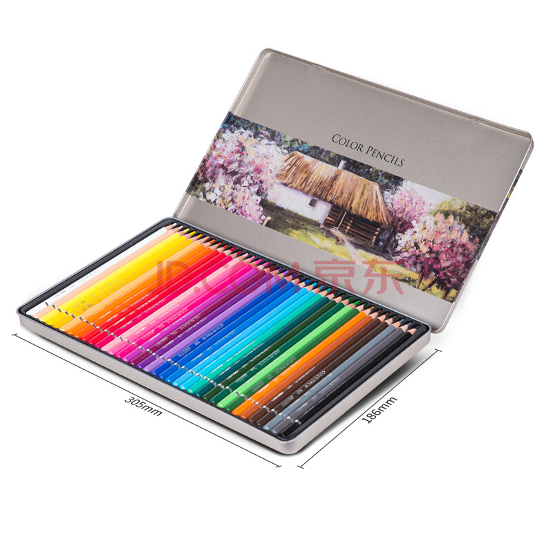 商品相册:得力(deli)36色油性彩色铅笔高显色美术设计专业手绘专用绘画笔彩铅入门填色铁盒套装6566彩笔第