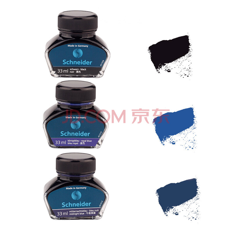 商品相册:施耐德(Schneider)钢笔墨水非碳素不堵笔德国进口瓶装开学必备用品 33ml蓝黑色(午夜深蓝)6923第