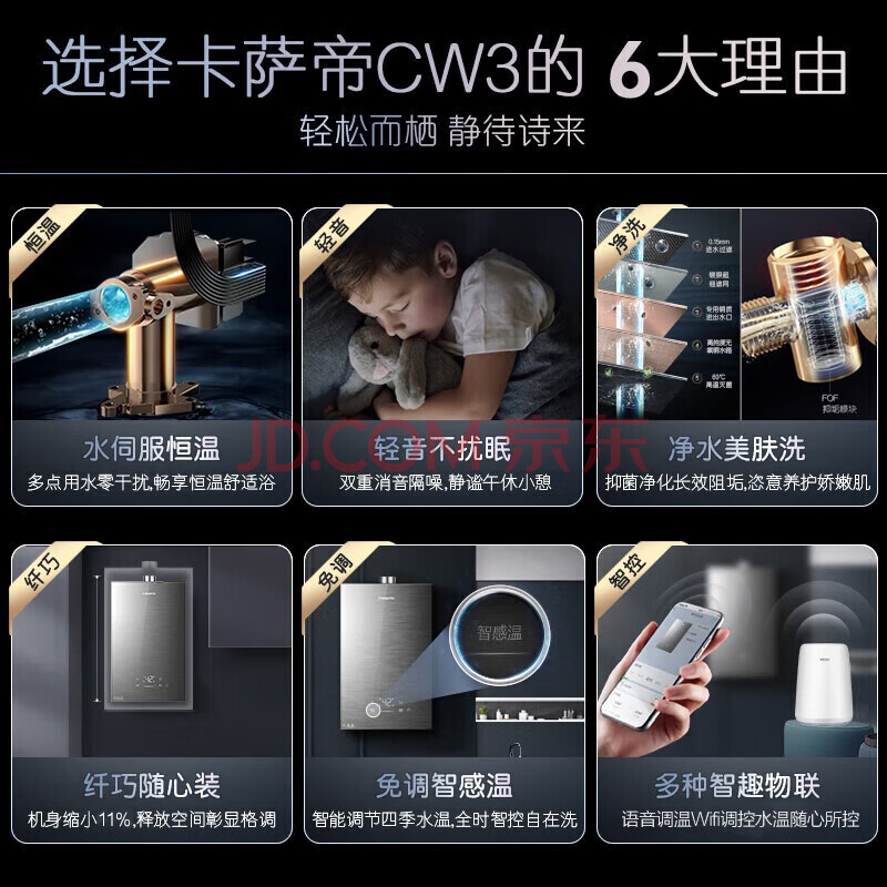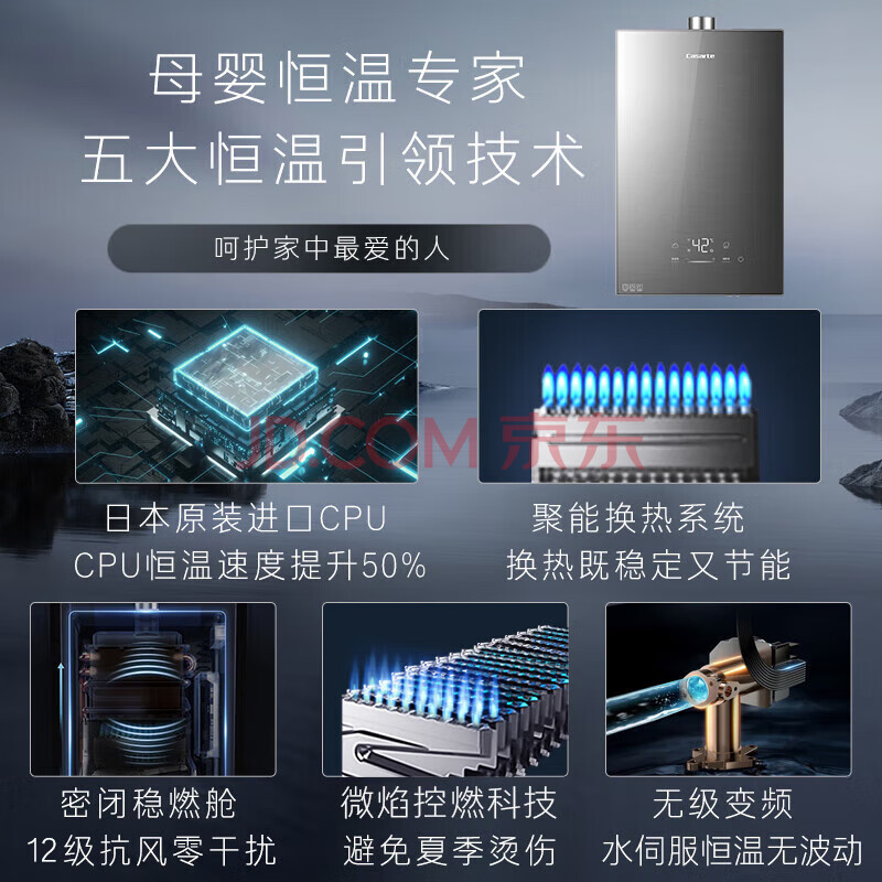 商品相册:卡萨帝(Casarte)13升燃气热水器天然气母婴级恒温 水伺服 静音下置风机小尺寸JSQ25-13CW3(12T)U1京东自营上门安装第