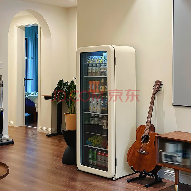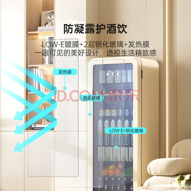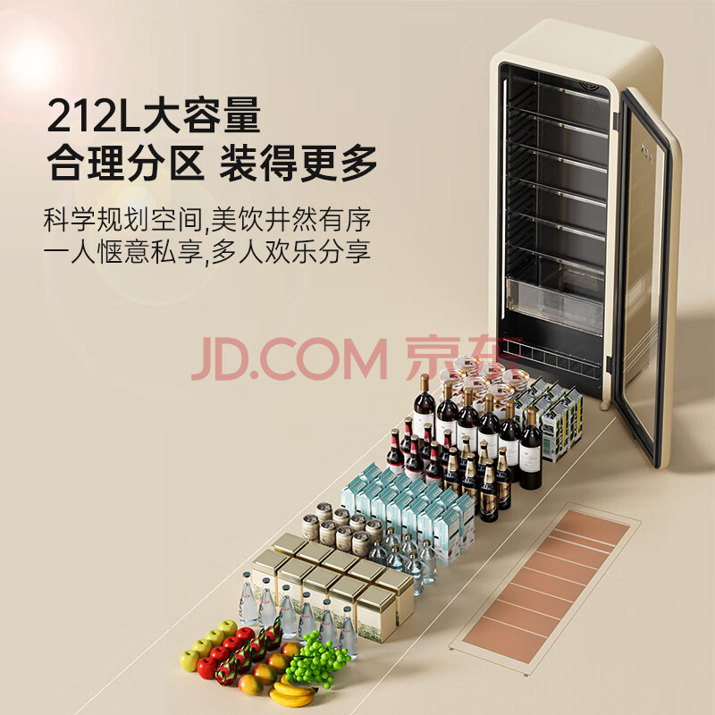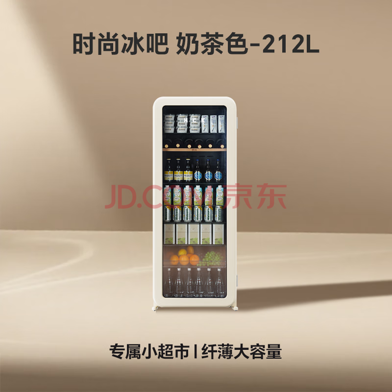 商品相册:HCK哈士奇时尚冰吧212升风冷无霜冰吧全冷藏家用客厅小冰箱一级能效智感轻雾SC-208RI奶茶色第