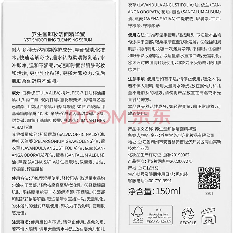 商品相册:养生堂卸妆洁面精华蜜150ml 眼唇脸部水油清洁敏感肌养肤节日礼物送女友第