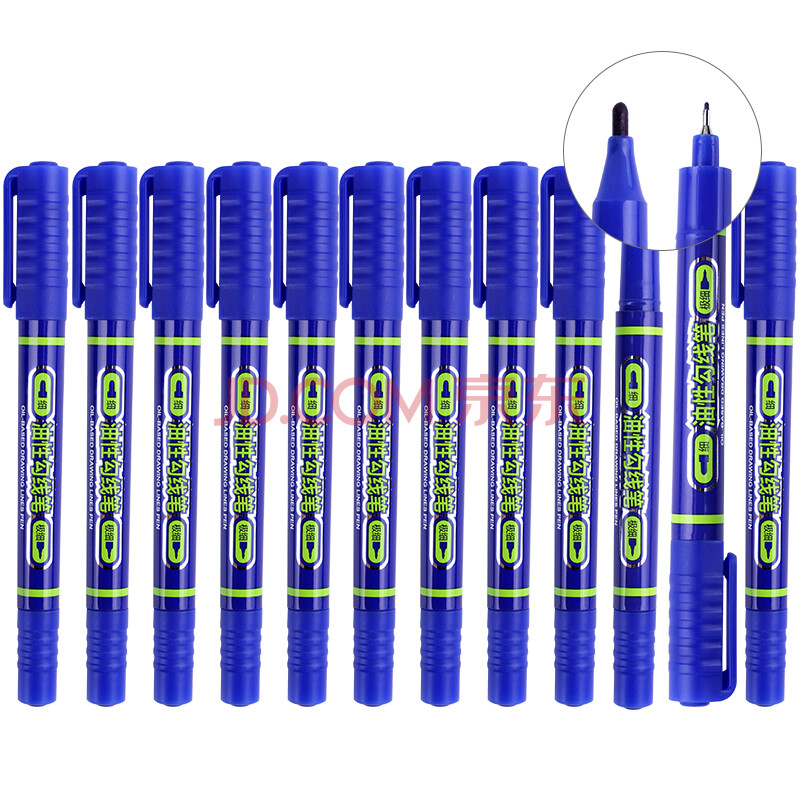 商品相册:宝克(BAOKE)【热门商品】MP2915 粗细双头多用油性勾线笔记号笔 会议笔签字笔马克笔蓝色12支/盒第