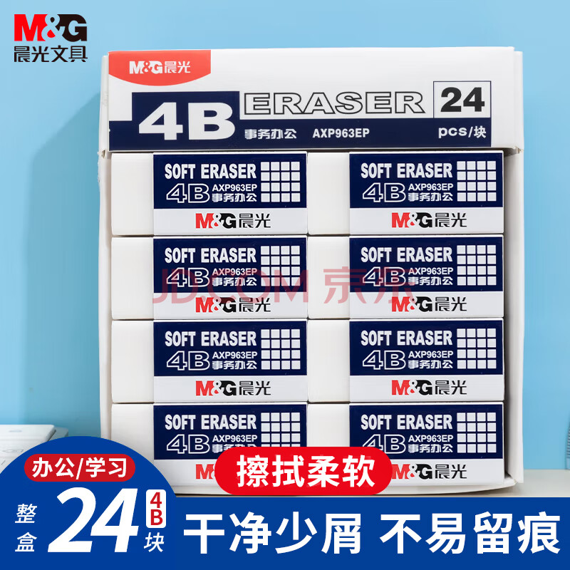 商品相册:晨光(M&G)文具24块净白4B橡皮擦学生考试儿童素描美术绘图橡皮办公用品易擦少屑第