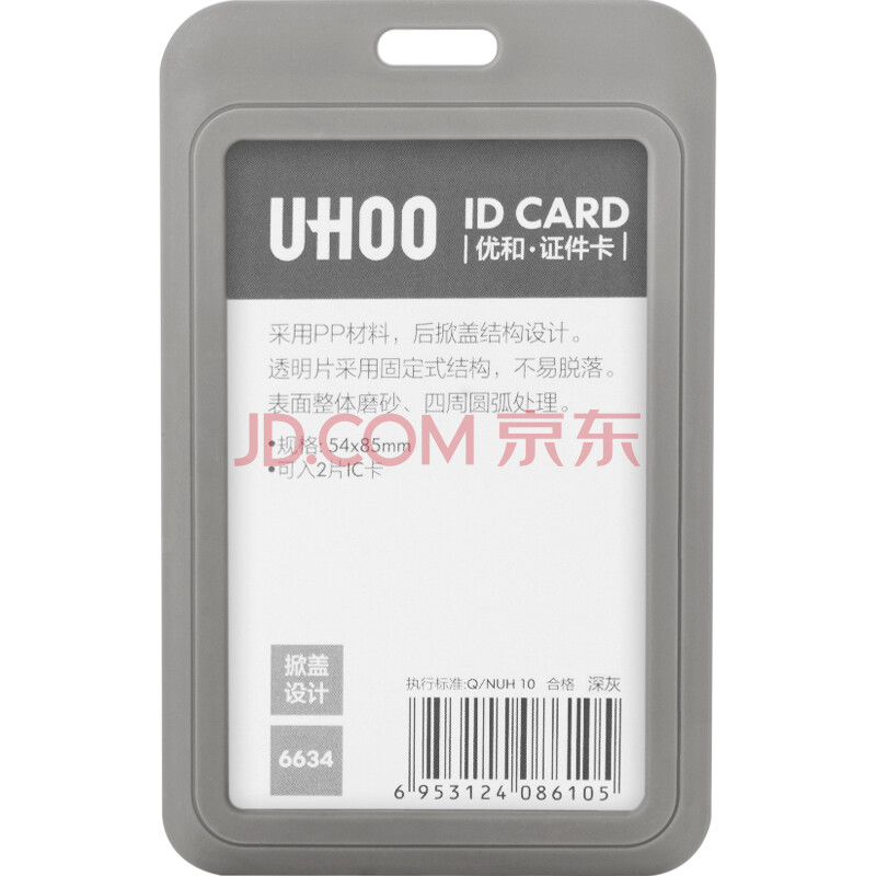 商品相册:优和(UHOO) 商务证件卡套 竖式 6个/盒 员工胸牌厂牌工作证 深灰 6634第