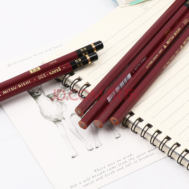 商品相册:uni三菱 素描绘画铅笔 学生铅笔HI-UNI木杆铅笔5B 12支装第