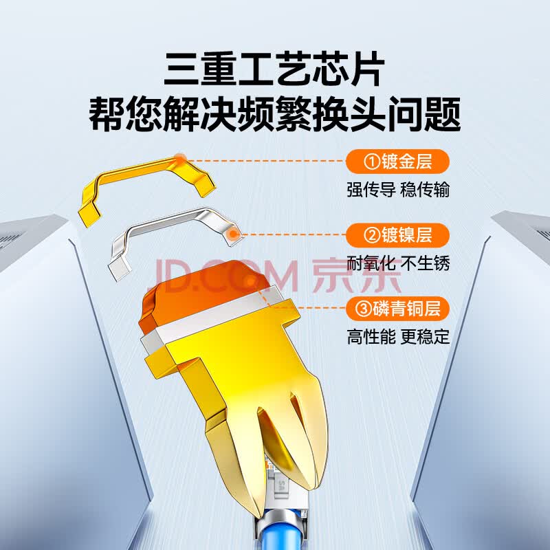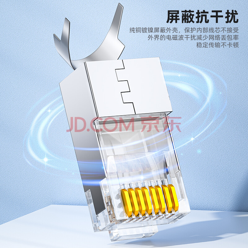 商品相册:山泽 超六类网线水晶头 超6类万兆网络连接头 两件式50U镀金CAT6A工程级RJ45屏蔽接头 50个 WJ6A050U第