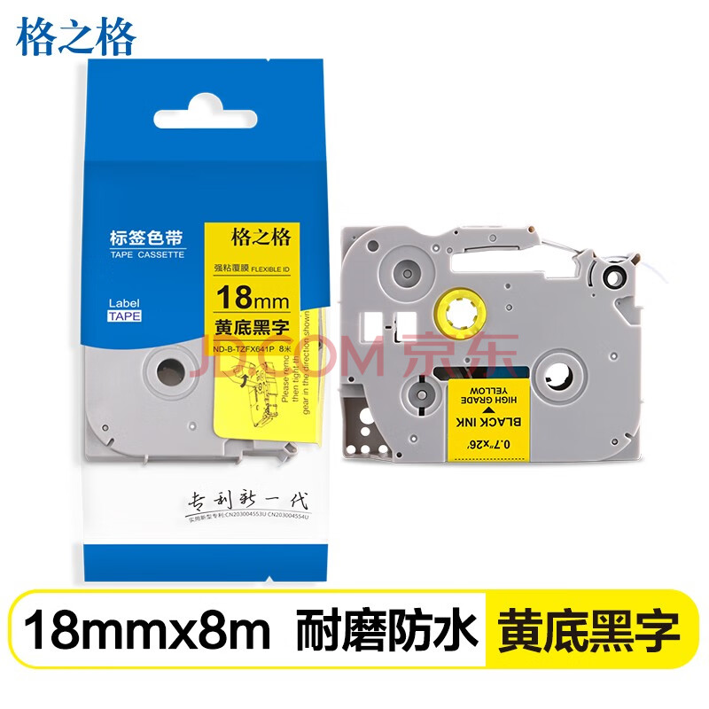 商品相册:格之格标签带适用兄弟标签机TZe-641黄底黑字18mm标签打印机色带不干胶标签纸适用PT-D210 450 E550W 第