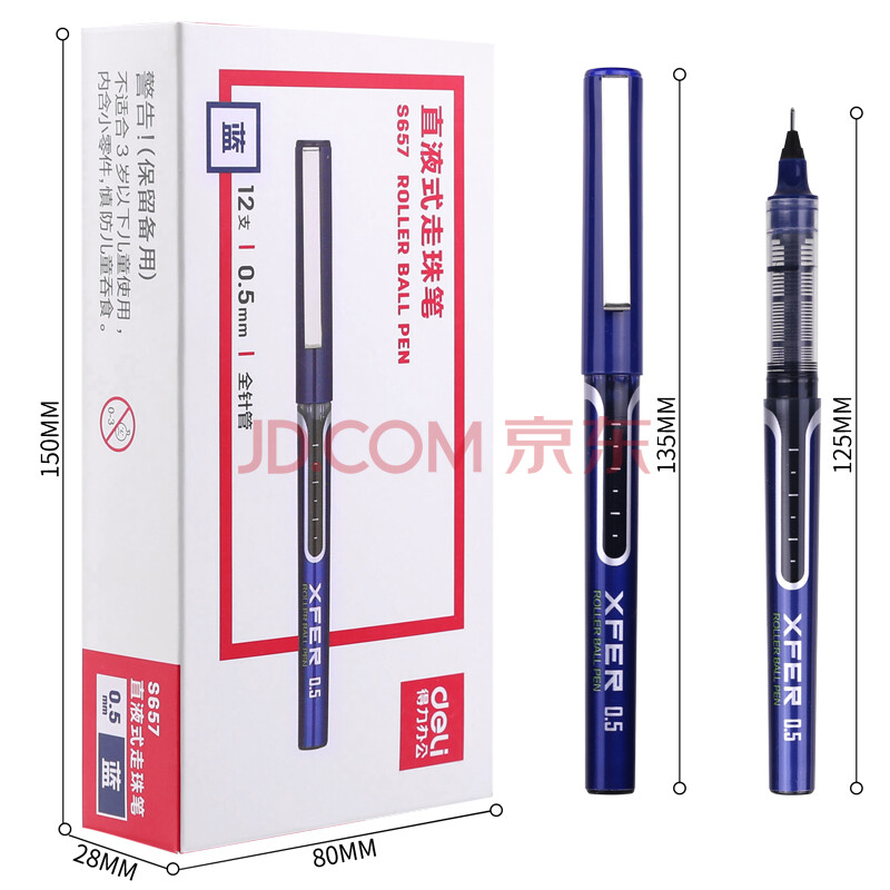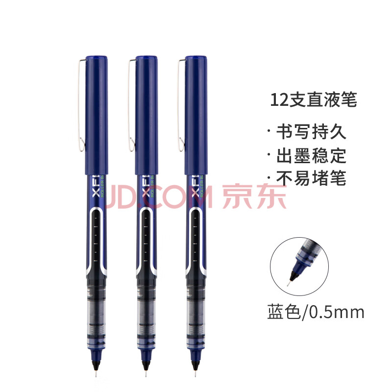 商品相册:得力(deli)0.5mm直液全针管走珠签字笔 办公用品学生中性笔会议笔 12支/盒蓝 S657第