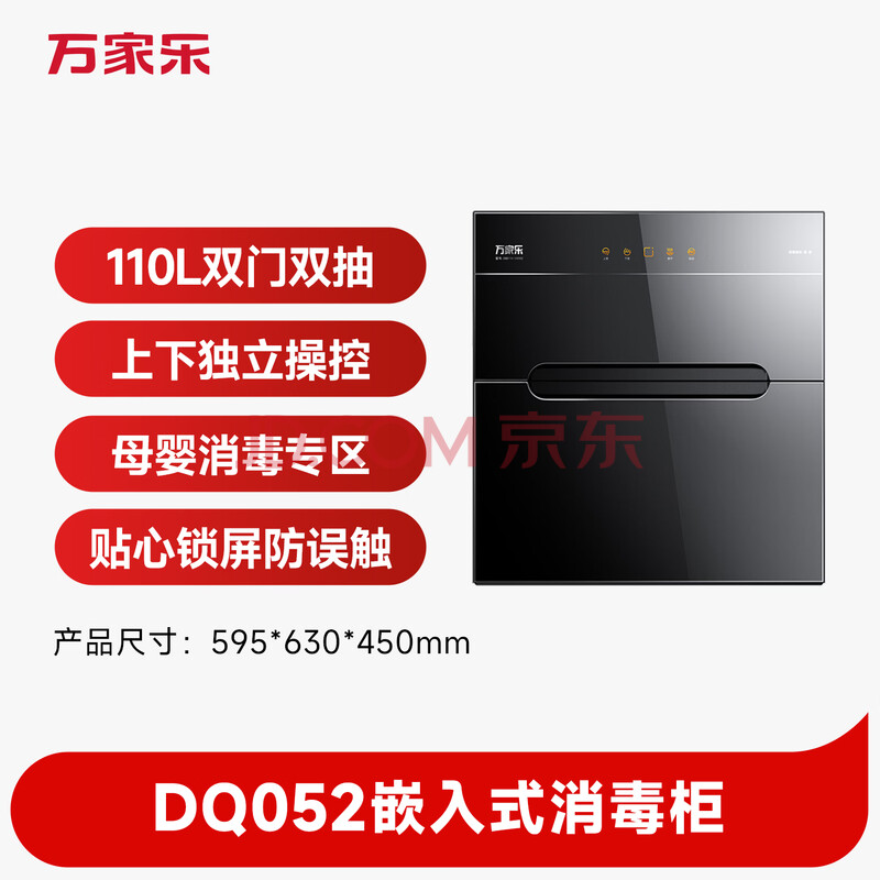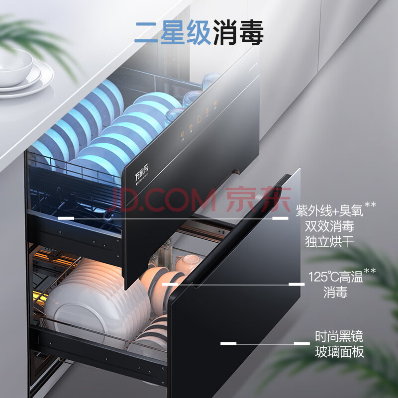 商品相册:万家乐消毒柜 嵌入式厨房碗柜消毒110L家用上下层独立操控二星级紫外线臭氧杀菌独立烘干母婴消毒DQ052第