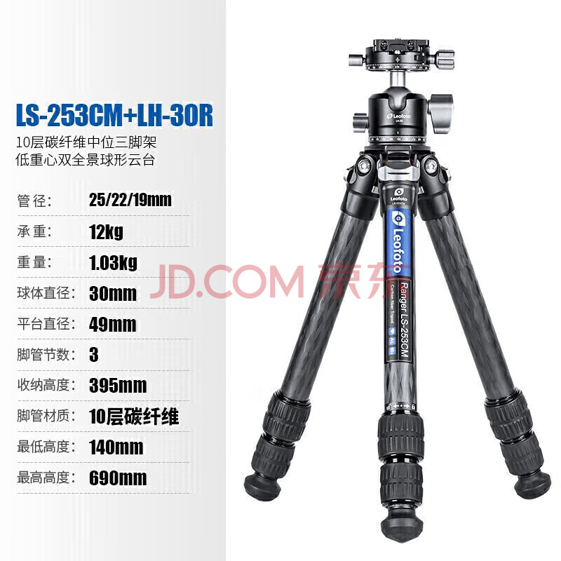 商品相册:徕图三脚架 碳纤维轻便型低位拍摄摄影摄像微单单反相机星空旅行专业三脚架云台套装 LS-253CM+LH-30R第