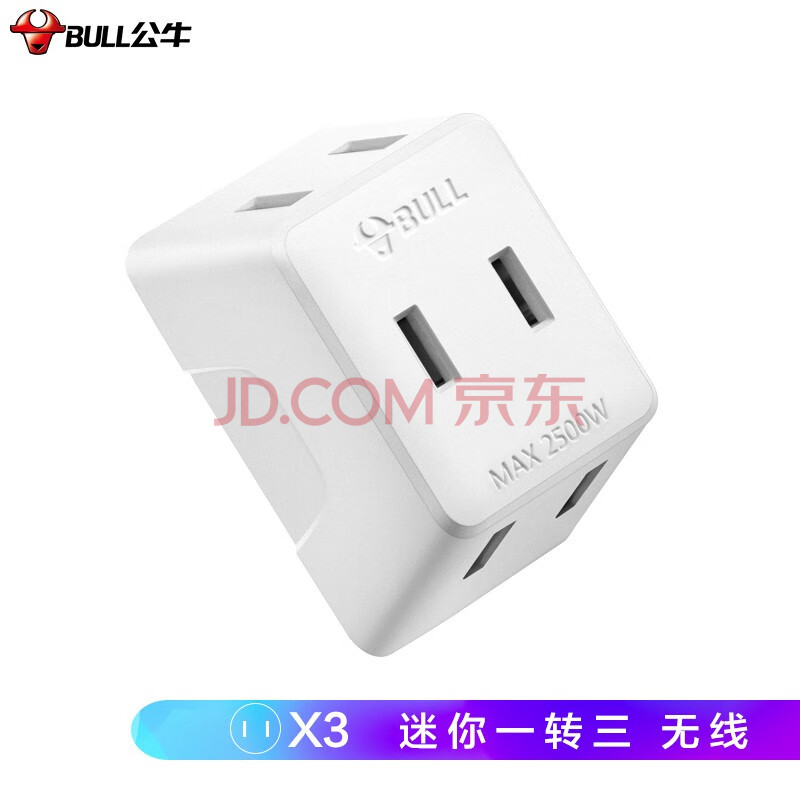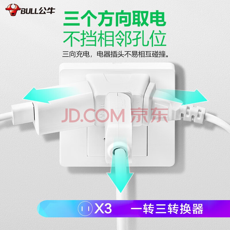 商品相册:公牛(BULL)插座扩展器一转三/一转多插座/两孔转换插头/转换器/插排 适用卧室、厨房3位两极插座GN-A230第