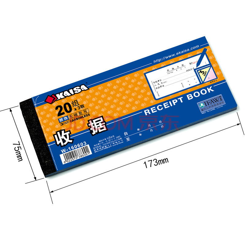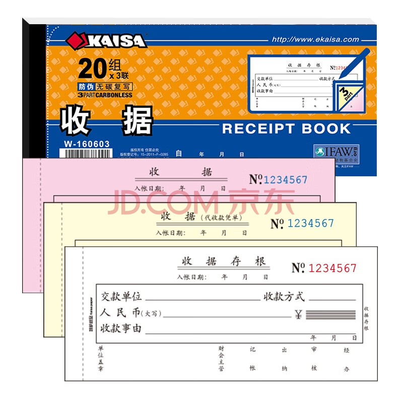 商品相册:凯萨(KAISA)60K/三联收款收据 3联20组无碳复写票据单栏收据加厚纸单据打印手写 10本装 W-160603第