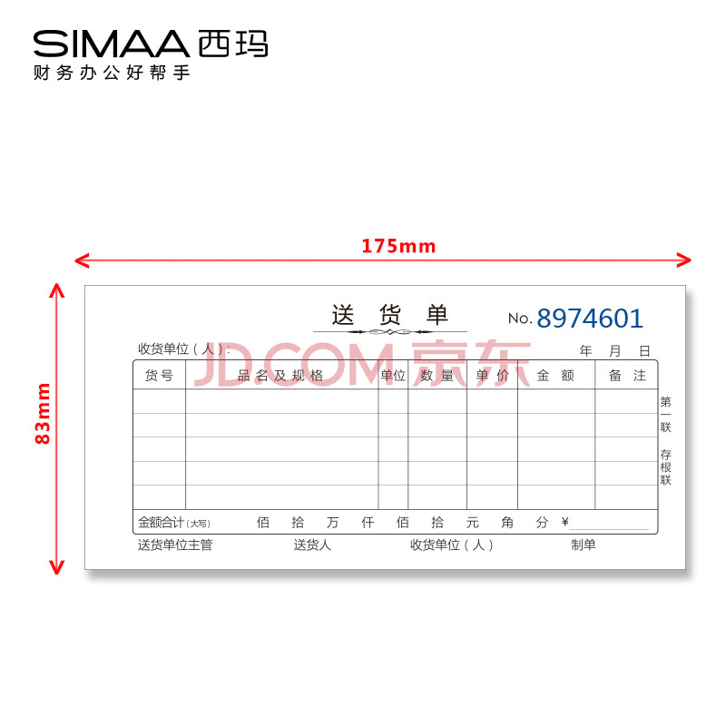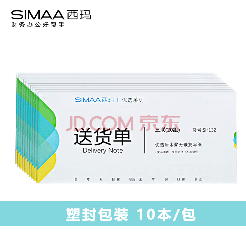 商品相册:西玛(SIMAA)10本装三联送货单20组 54K 175*83mm 无碳复写单据本SH132第