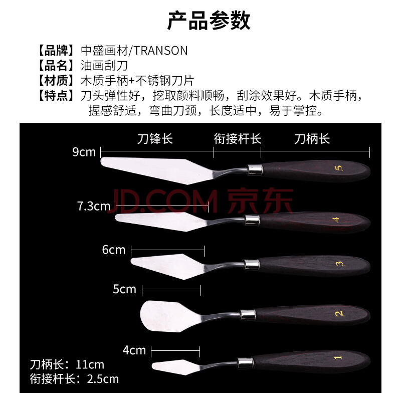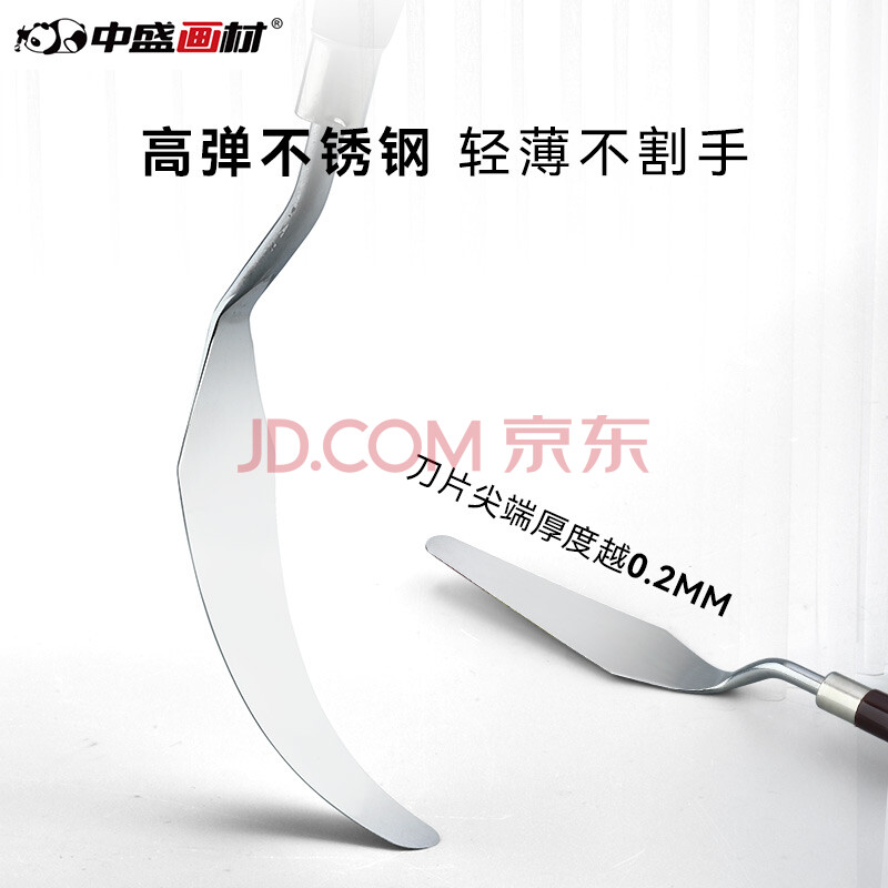 商品相册:中盛画材5支装油画棒刮刀颜料调色刀油画刀水粉画刀丙烯美术用品挑刀尖头圆头平头画具画材美术写生第1张/共6