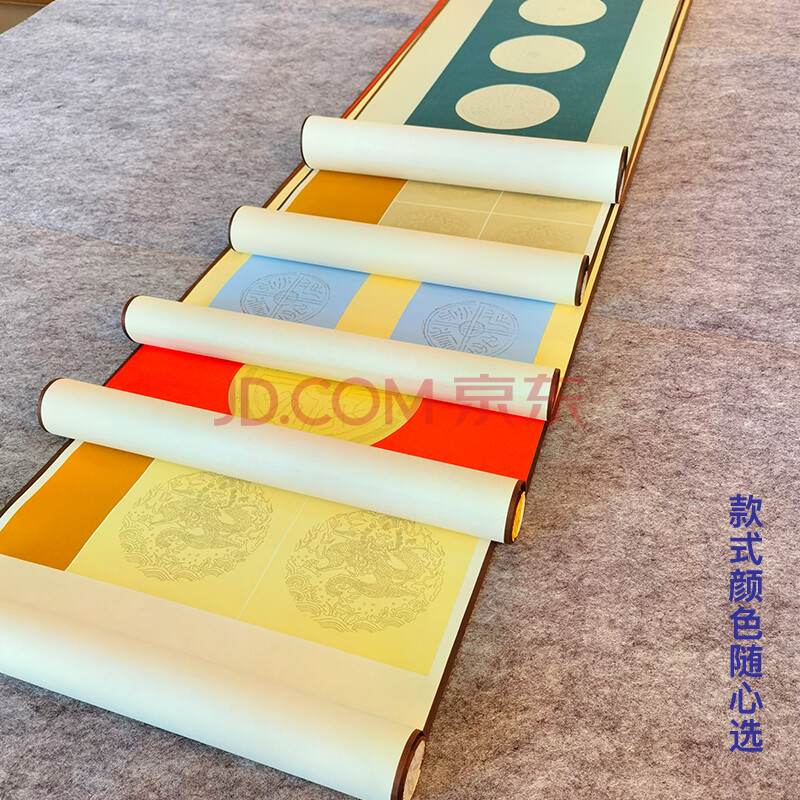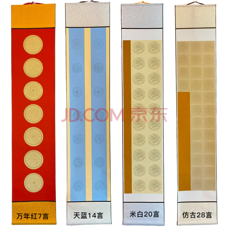 商品相册:芬尚 蜡染瓦当挂轴 精裱空白宣纸卷轴 四尺对开28言仿古 毛笔书法作品创作展示参展送礼用 172*32cm第