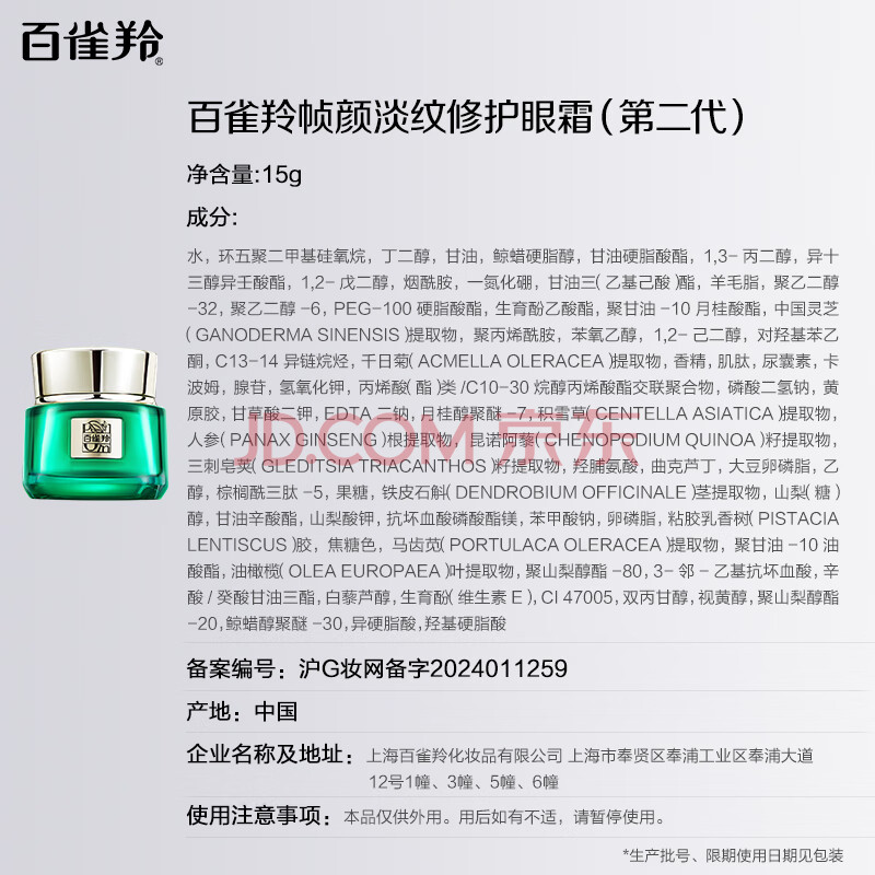 商品相册:百雀羚眼霜 草本帧颜紧致淡纹修护眼霜15g紧致弹润品质国货生日礼物第