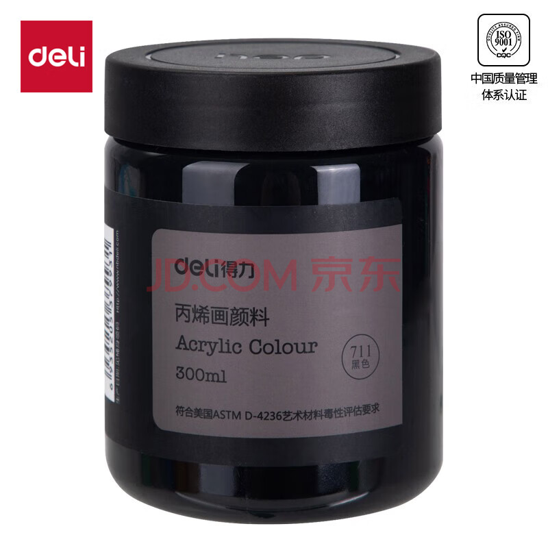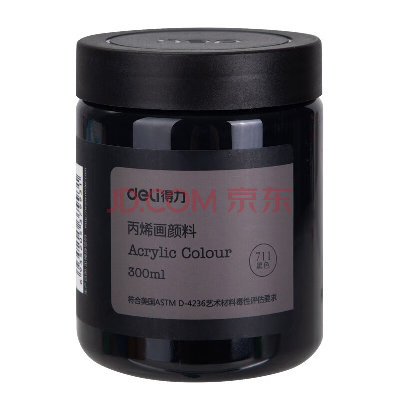 商品相册:得力(deli)(deli)黑色丙烯颜料300ml大容量墙绘手绘绘画DIY丙烯画大桶装大瓶美术女孩儿童礼物速写美育工具第
