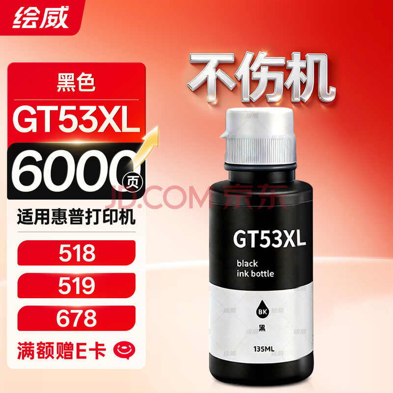 商品相册:绘威GT53XL墨水 适用惠普HP Tank518 519 678 510 538 418 516 511 725 530 758 595 5100 700打印机墨水GT52黑色第
