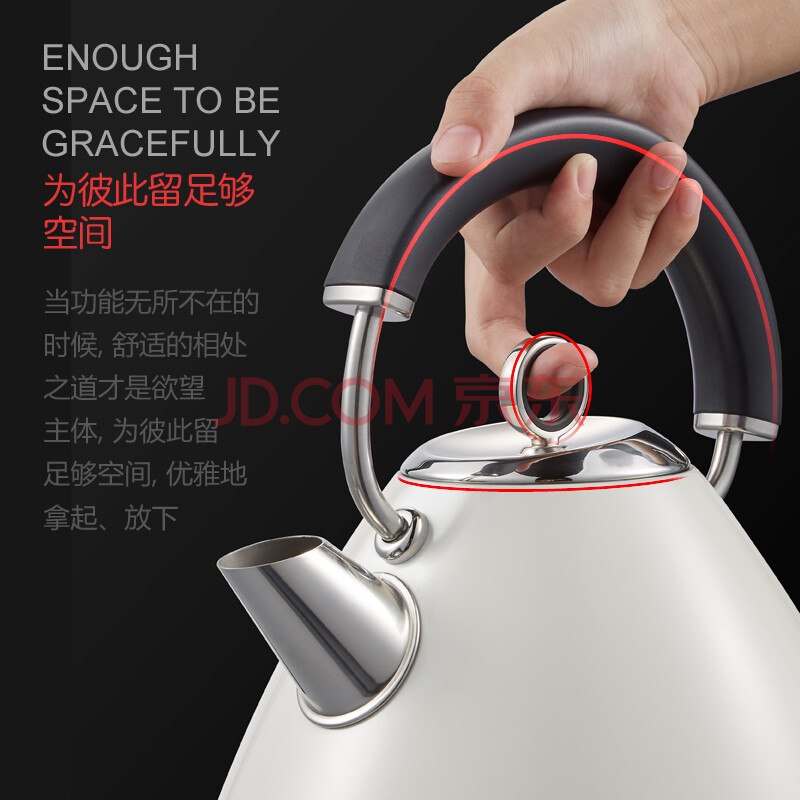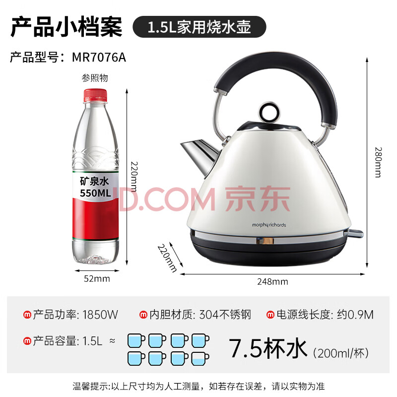 商品相册:摩飞电器(Morphyrichards)电水壶热水壶电热水壶 家用大功率速热304不锈钢1.5L大容量烧水壶MR7076A 米白色第